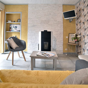 Le Mélaïs accueille votre famille de cinq personnes. Situé à l’extrémité de la longère, il dispose d'un poêle à granulés pour les séjours d'automne et d'hiver. Sa terrasse abritée est orientée plein sud et la pièce de vie peut accueillir une tablée de 15 personnes.